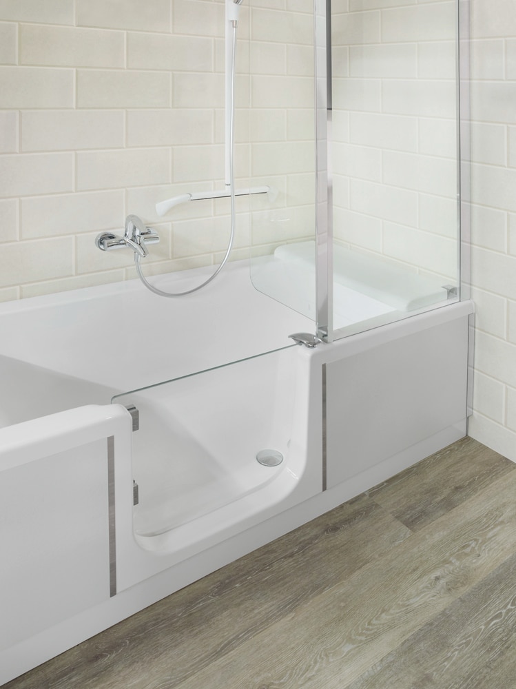 Kies het design dat het beste in je badkamer past en geniet al snel van de voordelen van deze 2-in-1-oplossing. Elk design is uitgerust met een stevige glazen deur die naar binnen opent, waardoor iedereen moeiteloos en veilig in bad stapt.