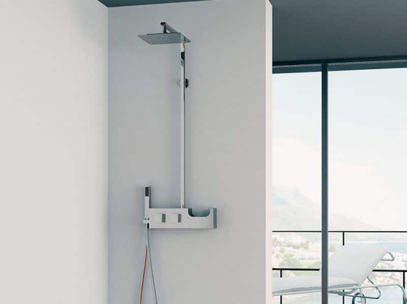 - In het design geïntegreerde regendouche, thermostaatkraan en flaconhouder