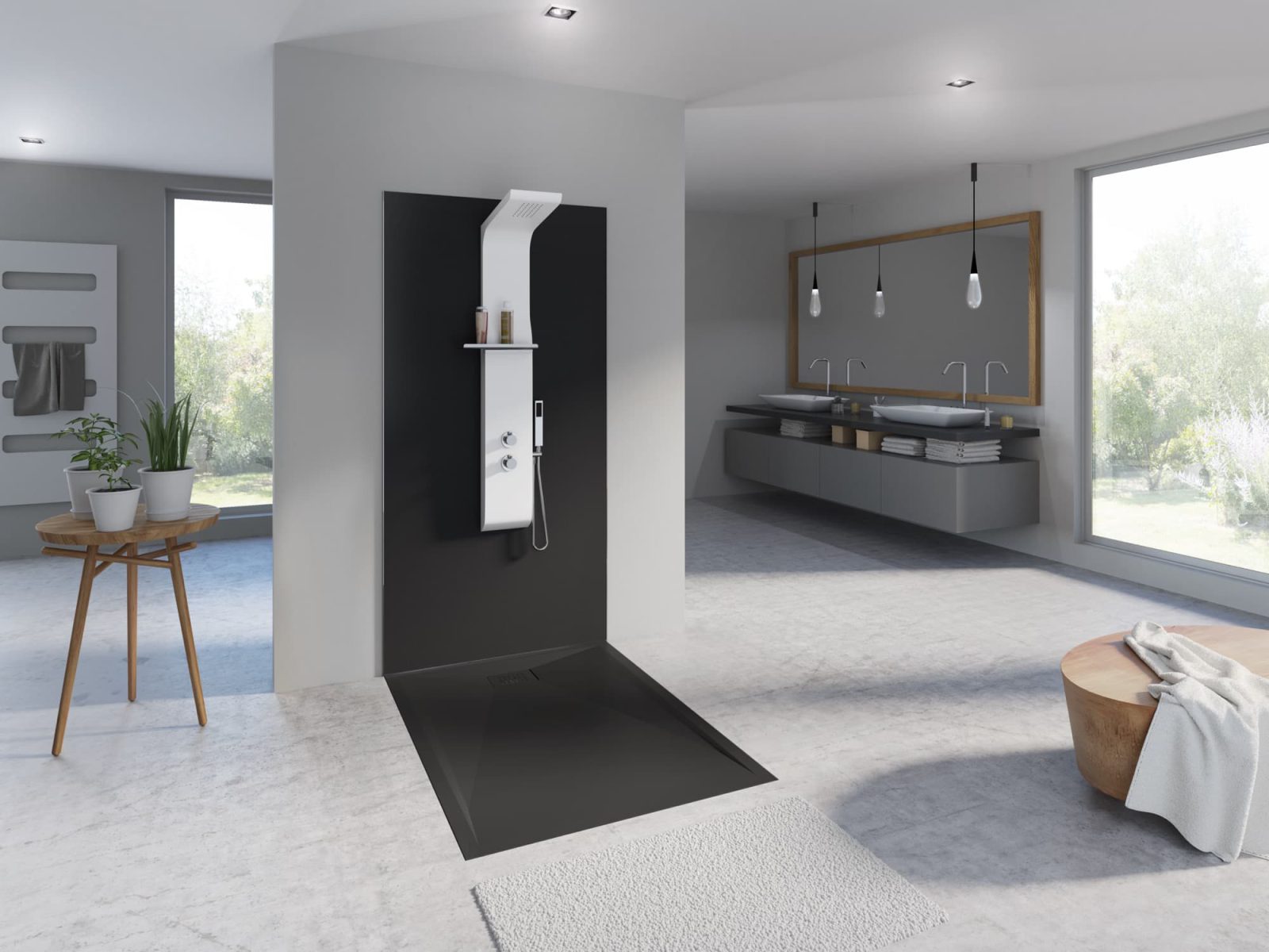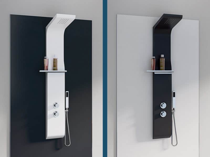 Aquamoon is een design douchekolom van ABS; een lichtgewicht, maar harde en slagvaste kunststof van hoge kwaliteit. Deze strakke verschijning is leverbaar in zwart en wit en standaard uitgerust met regendouche, inbouw thermostaatkraan en messing handdouche met anti-twist doucheslang. Het douchepaneel heeft een geïntegreerde verchroomde flaconhouder.