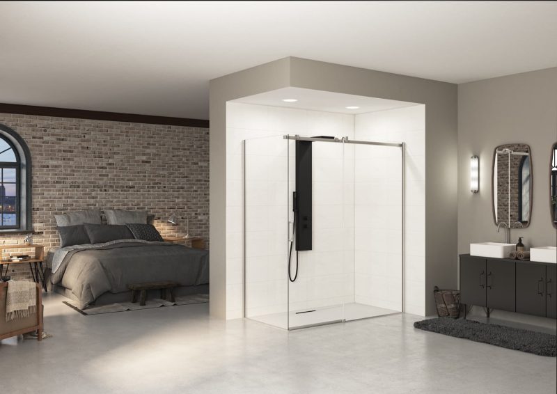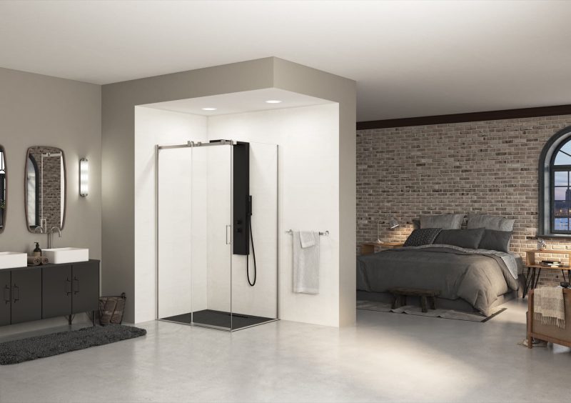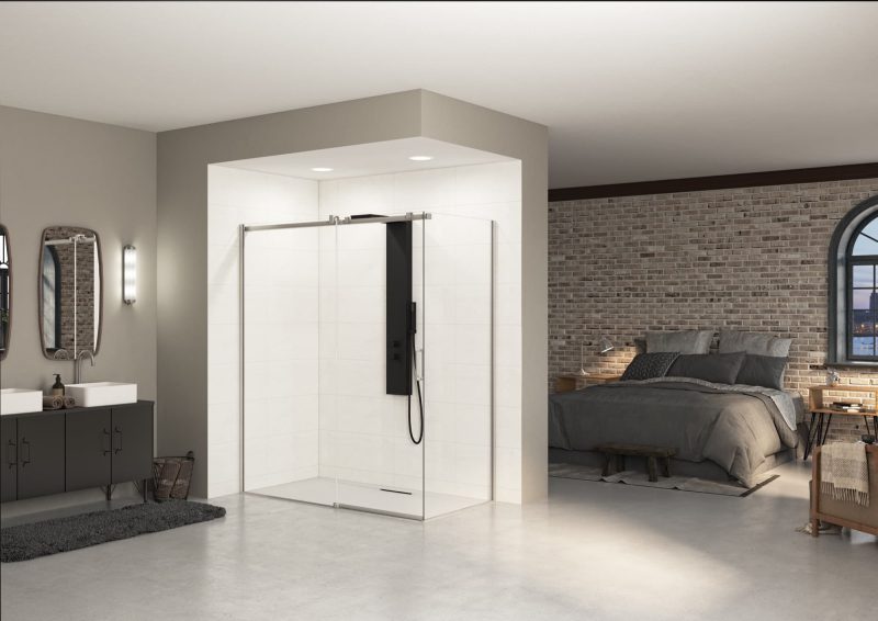 Wand met 1 schuifdeur + vaste wand voor hoekopstelling