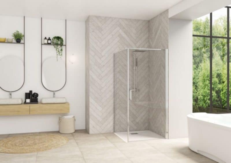 Draaideur (binnen/buiten) zonder drempel + vaste wand voor hoekopstelling