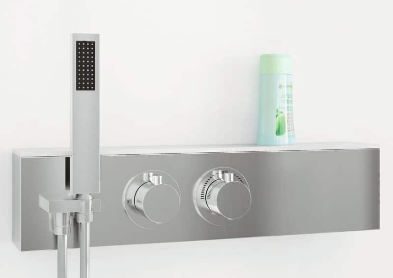 Détails1 porte pivotante (6 mm) of 2 coulissantes (6 mm); Parties fixes (4 mm); Portes coulissantes plus rigides; Roulettes métalliques chromées et déclipsables.