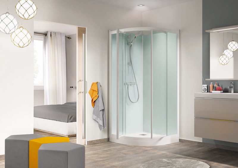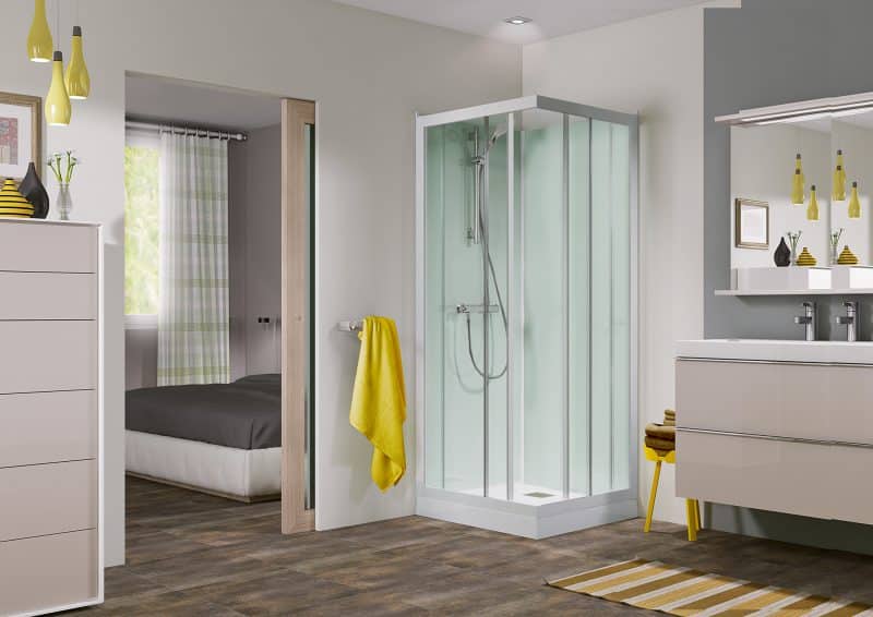 Le choix idéal pour un budget plus modeste Cette cabine de douche de forme carrée, rectangulaire ou en quart-de-rond est équipée de panneaux de fond en verre dépoli blanc de 5 mm nécessitant peu d’entretien. Le receveur de douche en Biocryl est moins lisse par nature, et dispose d’une grille d’évacuation en acier inoxydable chromé. Vous avez le choix entre des portes battantes ou coulissantes. La robinetterie, la douchette à main avec jet réglable et flexible de douche, la barre de douche, le flexible d’alimentation et le tuyau d’évacuation sont fournis de manière standard. Les profilés sont en aluminium laqué blanc.