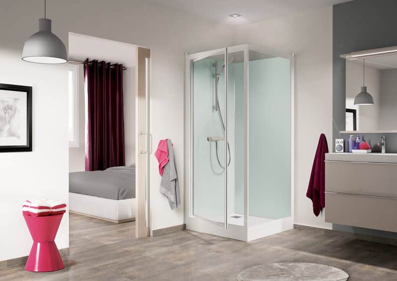 DétailsEntretien facilité : panneaux de fond en verre blanc opaque (5 mm); 1 portes pivotante (4 mm) ou 2 coulissantes (5 mm); Parties fixes (4 mm).