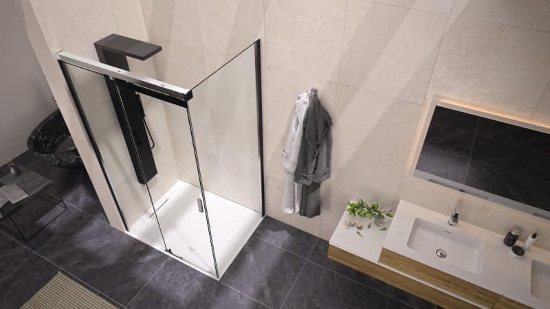 Constituée d’une paroi fixe et d’une paroi avec 1 volet coulissant, Flat C+F bénéficie d’un design moderne, notamment grâce à sa sérigraphie noire.